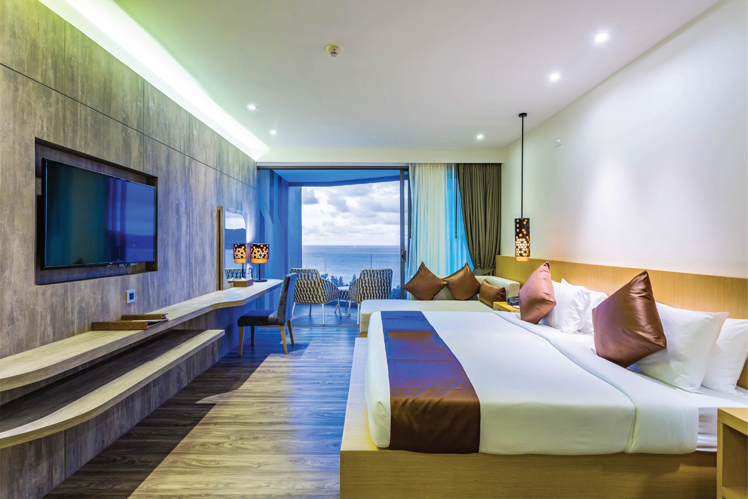 Immerse yourself in refined luxury with our Deluxe Panorama View Room. Spanning from 42m² to 47m², these elegantly furnished accommodations provide all the necessary amenities for a comfortable and lavish stay. Indulge in the spacious bathroom, relax on a plush sofa, and make use of the convenient writing desk. Be captivated by the 43-inch TV or bask in breathtaking views of either Patong Bay or a bird’s-eye view of Tri Trang. Discover an extraordinary sanctuary where style and comfort harmoniously merge with the mesmerizing surroundings.